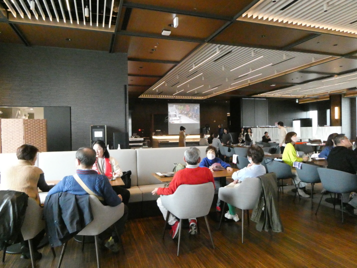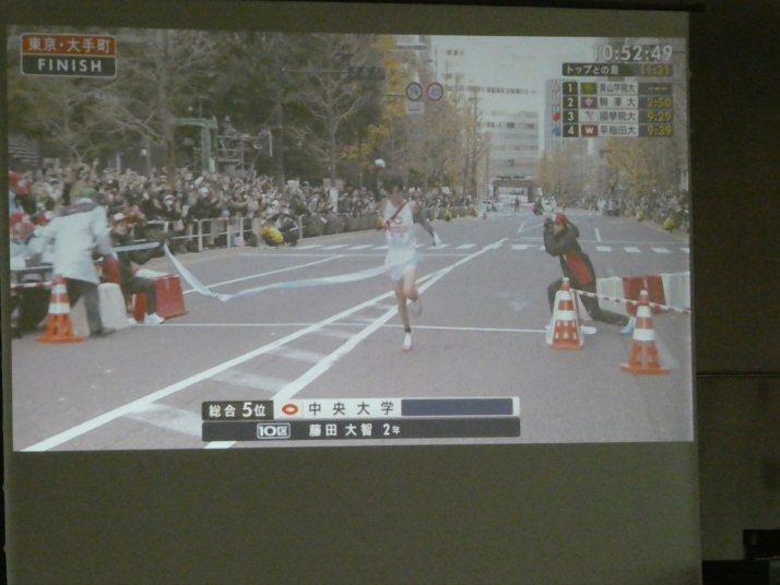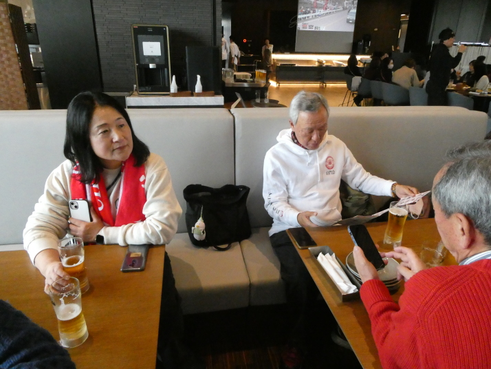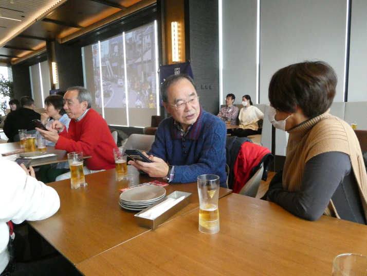 当日は11時から14時まで、『グッドビューダイニング』で大きなスクリーンに箱根駅伝の中継画面を映して、それを観て応援しながら美味しい料理を戴く、という「新年会」も兼ねた行事で、現役役員さんは昨年から実施していたそうですが、OB会としては今回初めての参加でした。