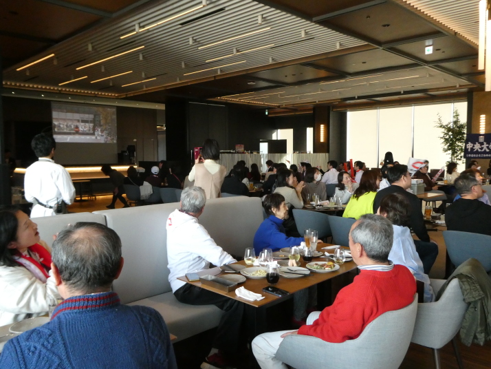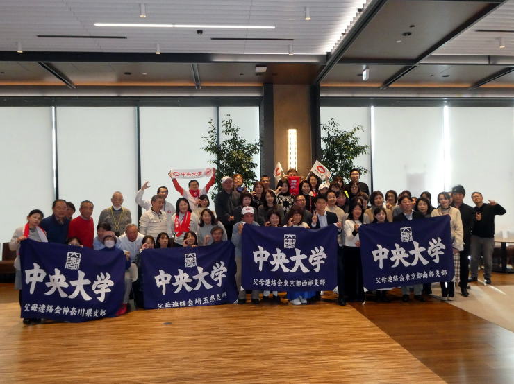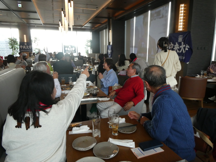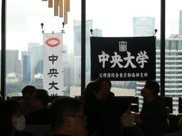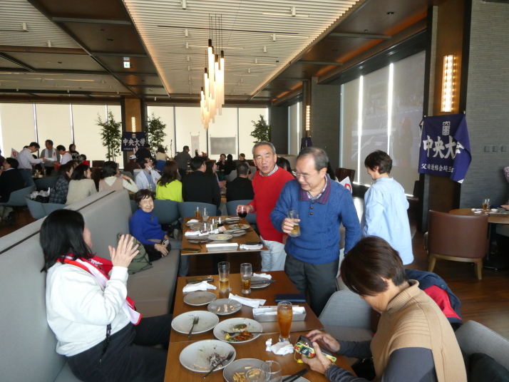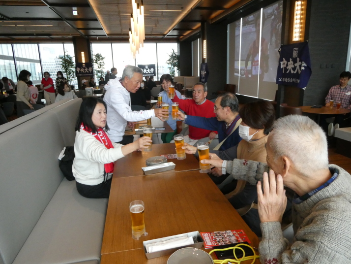 去る1月3日(金)、埼玉県支部OB会から9名のメンバーが、駿河台キャンパス19階『グッドビューダイニング』で中央大学父母連絡会首都圏8支部が開催した「プライベートビューイング・新年会」(埼玉県支部長主催)に参加し、箱根駅伝復路で健闘する中央大学を応援しました。