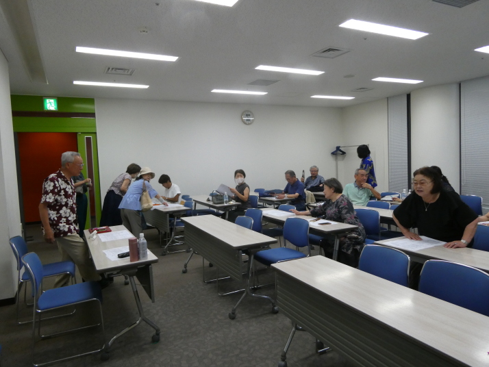 承認議案の審議が終了し総会閉会後、秋の散策行事と来年のバス旅行の行先について意見交換しました。その結果、バス旅行については、日程を来年5月17日(日)とし、行先は行田方面(忍城、行田古墳、古代ハス他)としました。散策行事についても色々と希望が出されましたが、会議室の使用時間(12時)が近づいたため、全員で集合写真を撮影してから早々に退室しました。今後は旅行幹事に一任することとなりました。